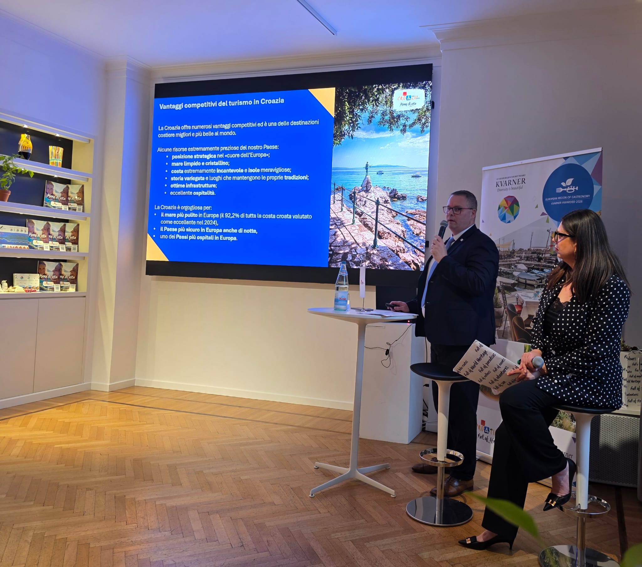 Hrvatska turistička zajednica i Turistička zajednica Kvarnera u Milanu su predstavile novosti hrvatske turističke ponude kako bi talijansku javnost još bolje upoznale s praksama i trendovima u hrvatskom turizmu, s obzirom na to da je Italija za Hrvatsku jedno od najvažnijih emitivnih tržišta. Novosti je predstavio Kristjan Staničić, direktor Hrvatske turističke zajednice, a sve okupljene pozdravila je i Viviana Vukelić, direktorica Predstavništva HTZ-a u Italiji. Događanju je prisustvovao i Stjepan Ribić, generalni konzul RH u Milanu.