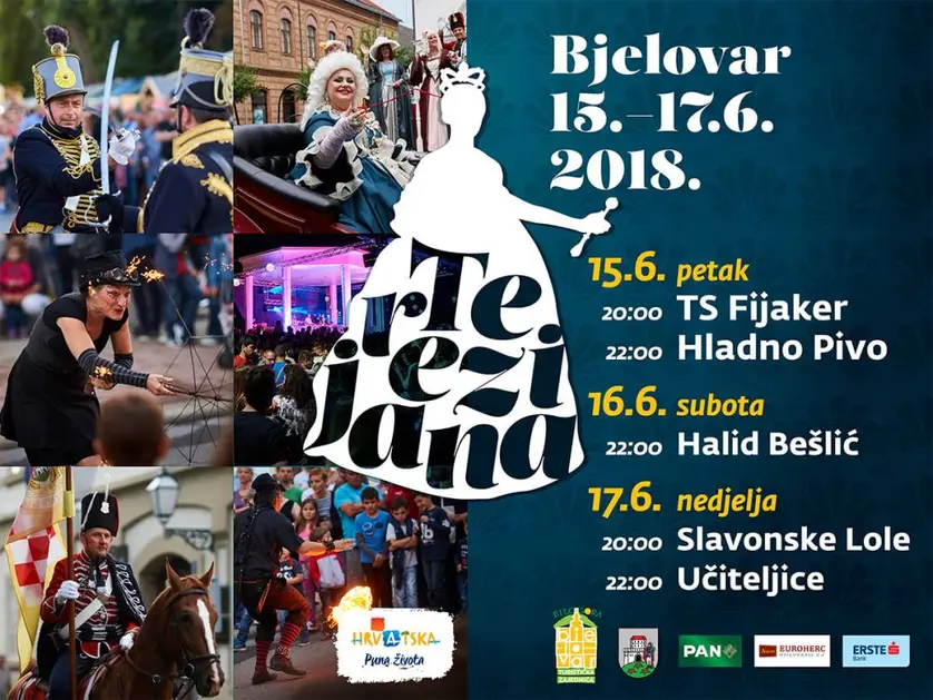 Tijekom tri dana Terezijane, Bjelovarčani i njihovi gosti moći će vidjeti povijesne postrojbe, divljač iz carskih lovišta, uživati u predstavama i koncertima Hladnog Piva, Halida Bešlića i još mnogih domaćih zvijezda.