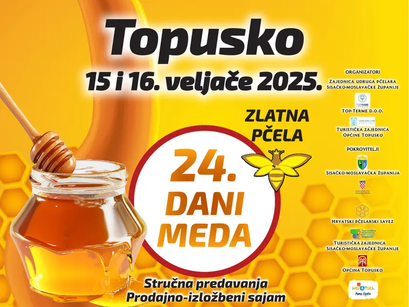 Ove godine manifestacija se održava po 24. put i održava se tijekom dva dana - 15. i 16. veljače. Zaprimljeno je 159 uzoraka meda za analizu na Agronomskom fakultetu u Zagrebu. Prethodnu godinu ocjenjivao se med na području Sisačko-moslavačke županije u pet kategorija (kesten, bagrem, cvjetni med, trušljika, medljikovac i amorfa). Od 112 uzoraka meda bilo je 31 zlato, 49 srebra i 28 bronci (4 zahvalnice) te je najboljima dodijeljeno šest zlatnih pčela. Uz prodajnu izložbu održat će se i stručna predavanja, kako za goste, tako i za mještane Topuskog i Općine Topusko, o upotrebi meda u službi zdravlja. Uz razne degustacije, promovirat će se i upotreba meda u gastronomiji.
