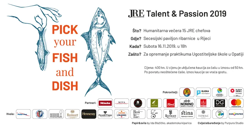 Događanje se održava 16. studenog u 18 sati, a jedinstveno secesijsko zdanje riječke Ribarnice, trbuh grada Rijeke, na jednu večer postat će restoran u kojem gosti po principu “pick your fish & dish” mogu uživati u prilici da se druže sa chefovima i gledaju ih na djelu. Hranu će pratiti vina odabranih hrvatskih vinarija, a chefovi-slastičari su se pobrinuli i za slatki stol.