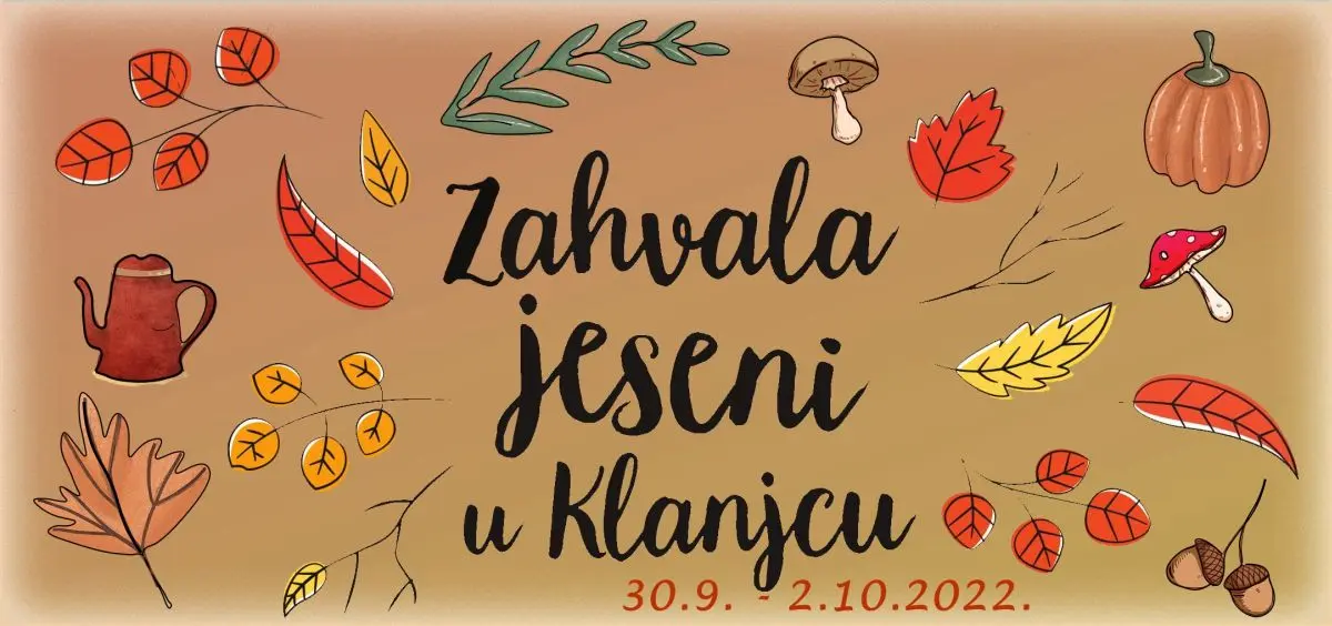 Ako volite Zagorje u jesen, dobro društvo, opuštenu atmosferu uz odličan glazbeni program i fine domaće delicije iz ponude naših ugostitelja, bit ćete i ove godine s nama u Klanjcu na tradicionalnoj manifestaciji “Zahvala jeseni 2022.”