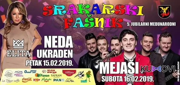 U Sračincu kraj Varaždina 15. veljače se održava peti jubilarni međunarodni Srakarski fašnik. Uz veliku povorku maškara, posjetitelje očekuje i bogati glazbeni program, pa će tako u petak u velikom šatoru nastupiti Neda Ukraden i Tango bend, dok je subota rezervirana za pravu tamburašku poslasticu – Mejaše i Kumove.