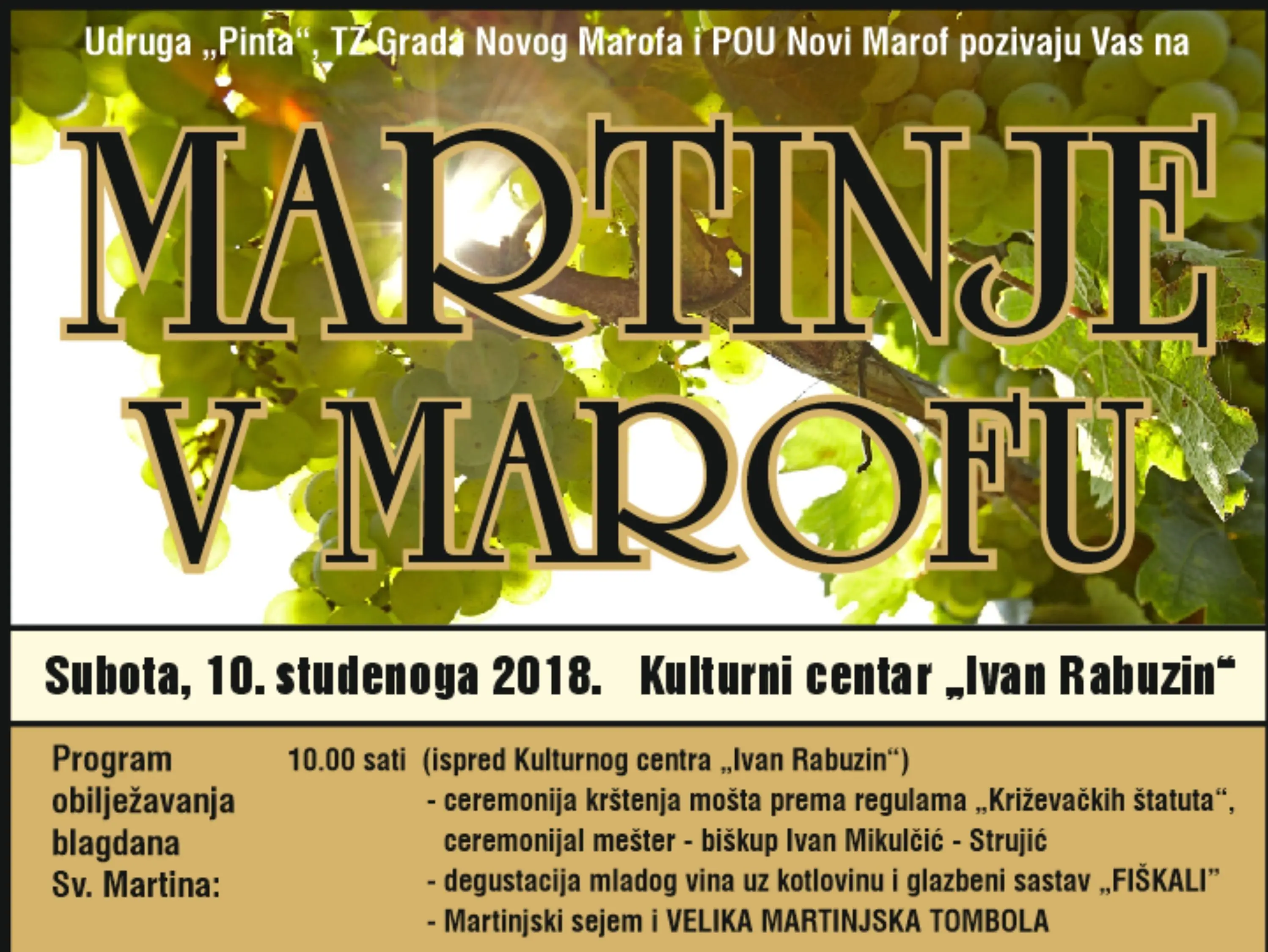 Studeni uvijek ide zajedno sa plodovima jeseni pa tako "Martinje v Marofu" povezuje najbolje iz prirode ali i tradicije. Krštenje mošta prema Križevačkim štatutima, gastronomska ponuda prilagođena ovoj veseloj manifestaciji te mnoštvo zabavnih sadržaja izvrstan su razlog da 10. studenog posjetite Novi Marof.