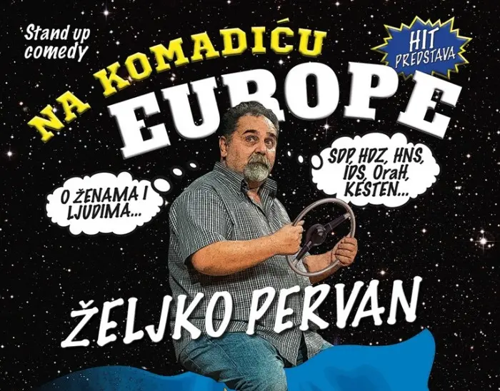 Željko Pervan majstor je improvizacije, obožavatelj Slovenaca, smrknuti profesor, živahni govornik i komentator hrvatske svakodnevice. Njegova nova komedija pod nazivom "Na komadiću Europe“, vrhunac je stand up komedije u Hrvatskoj. Od nastanka legendarne "Večernje škole" do sada je nekoliko puta pohodio mnoge hrvatske gradove i bez iznimke punio dvorane.