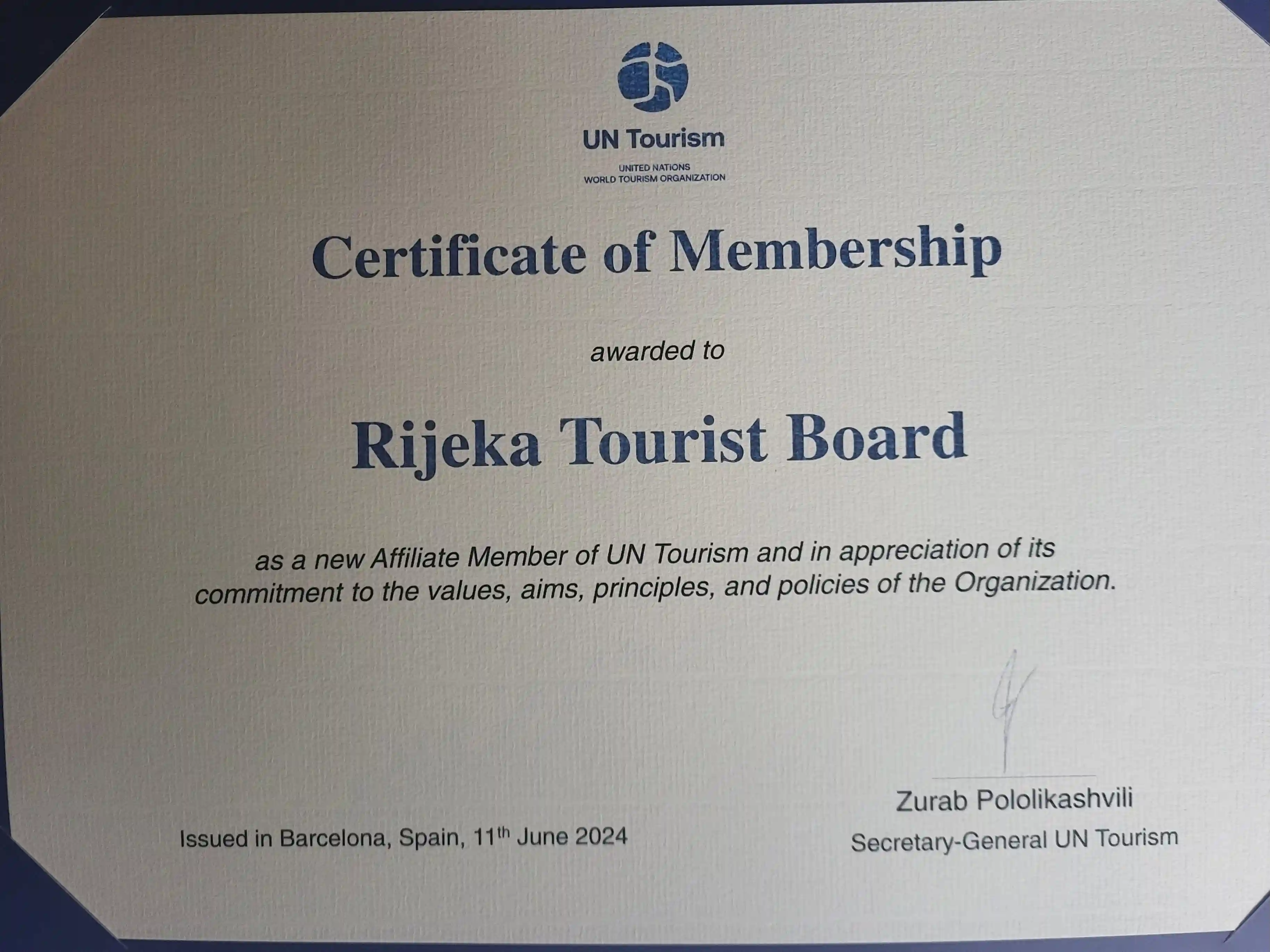 Turistička zajednica Grada Rijeke postala pridruženi član Svjetske turističke organizacije